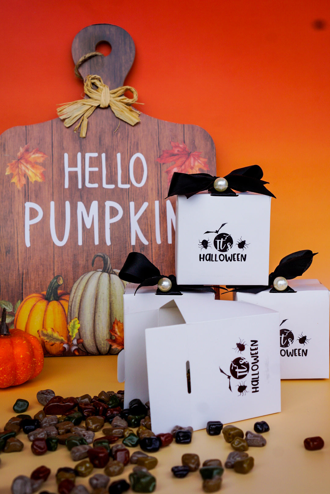 Ambalate cu grijă într-o cutie albă elegantă cu detalii tematice de Halloween, sunt alegerea perfectă pentru a aduce rafinament mesei tale de sărbătoare sau pentru a oferi un cadou dulce și surprinzător.